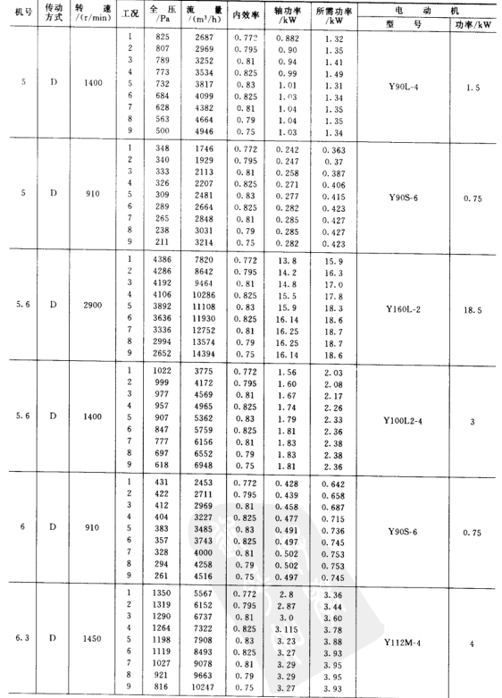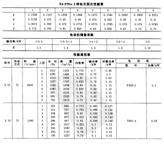 F4-57 series fan performance range: flow: 666m3/h-5524m3/h; total pressure: 195Pa-1044Pa.